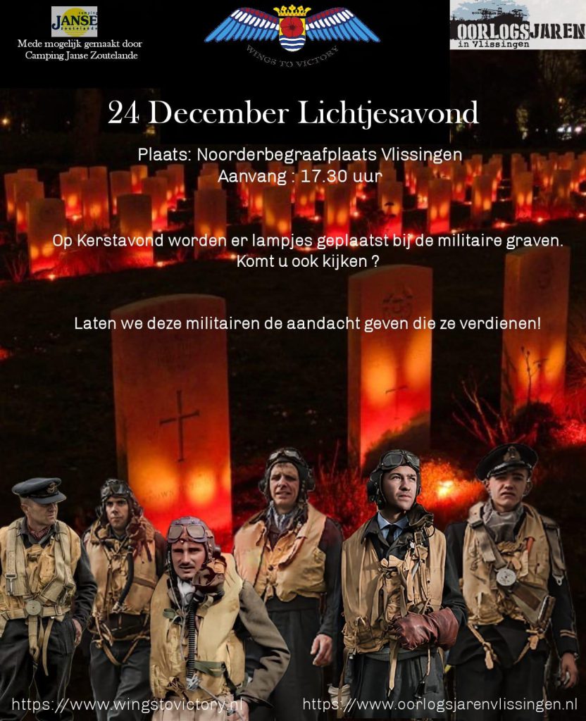 Op 24 december organiseren we weer een Lichtjesavond. Het begint om 17.30 uur. Er worden lampjes geplaatst bij alle militaire graven.